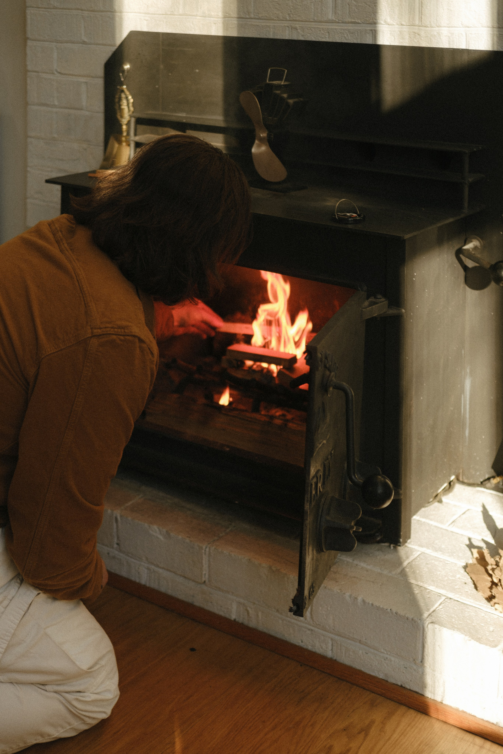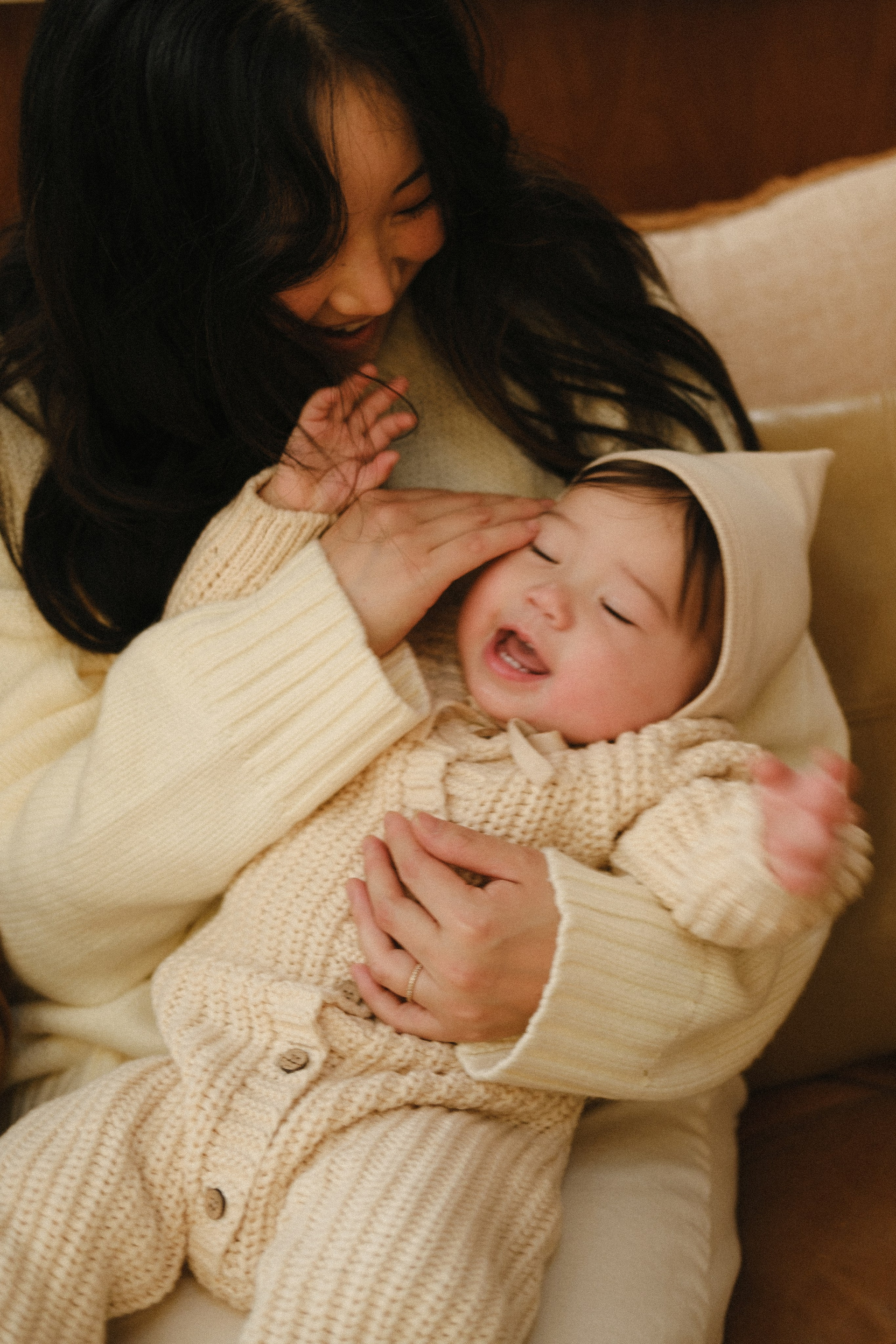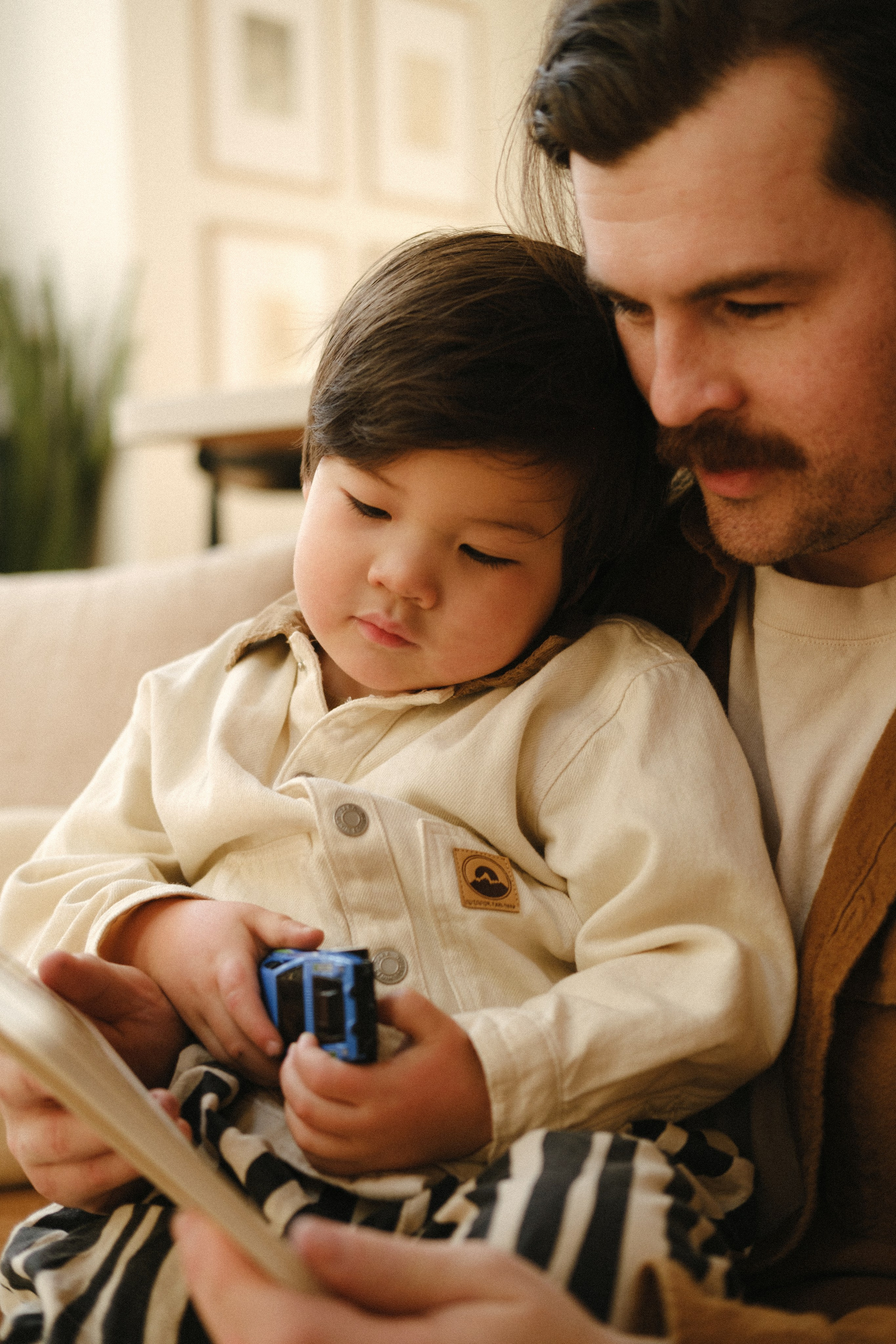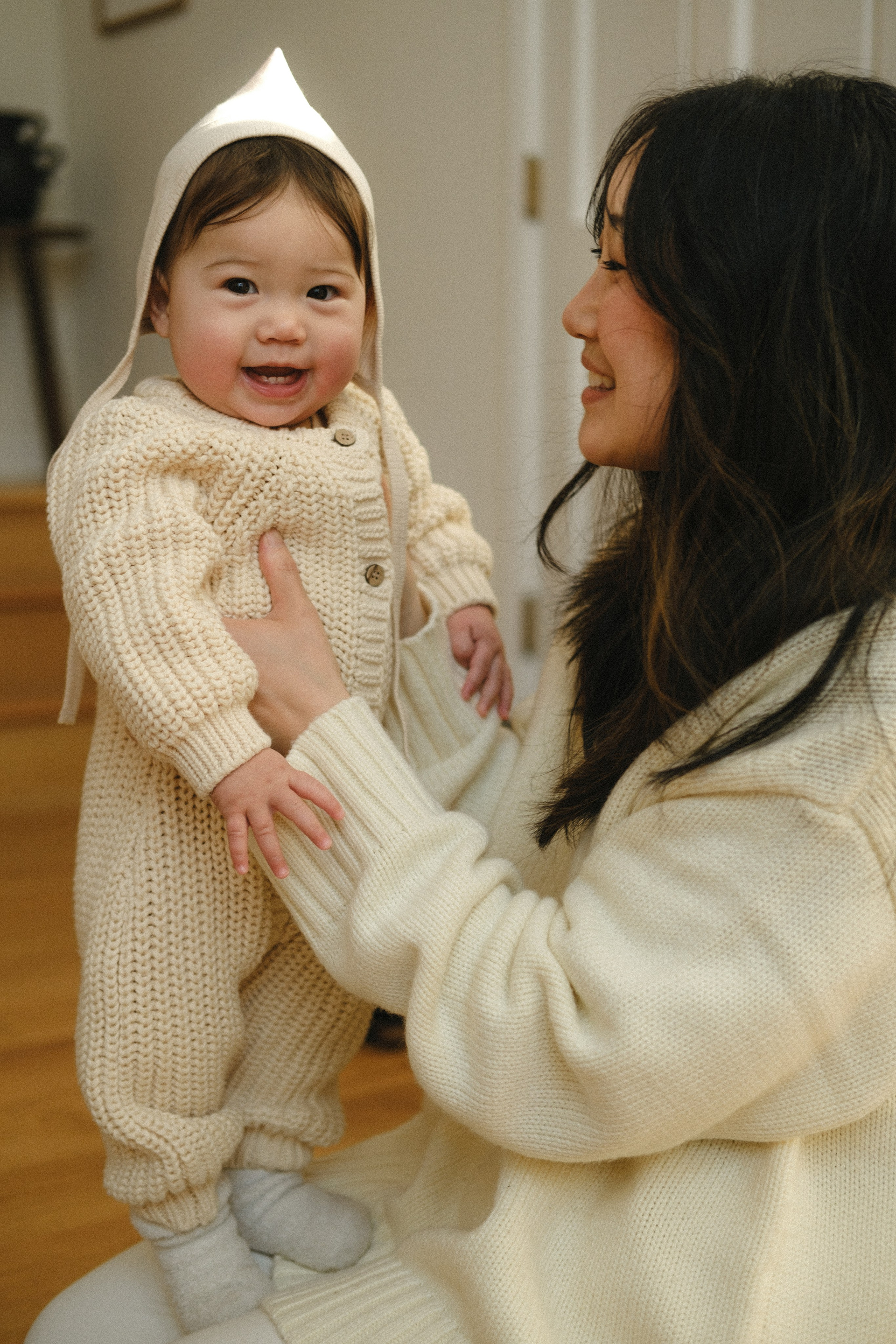 It couldn’t have been more perfect. Picture this: crisp, frosty air, snow blanketing the ground, and a quiet forest where the only sound is birdsong. It’s 3 PM — golden hour — and the house is glowing with the most magical light. It’s cold outside, but inside it’s warm and cozy with the wood stove crackling, thanks to dad. Perfect for snuggles and story time.